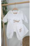 Gros Shop Müslin Yeni Doğan 2Katlı Organik %100Pamuk Kişiye Özgü Nakışlı Hastane Çıkış Seti(İkili Dal Model-3)