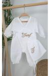 Gros Shop Müslin Yeni Doğan 2Katlı Organik %100Pamuk Kişiye Özgü Nakışlı Hastane Çıkış Seti(İkili Dal Model-3)