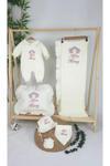 Gros Shop Müslin Yeni Doğan 4 Katlı Organik %100Pamuk Kişiye Özgü Nakışlı Hastane Çıkış Seti-Pudra Gökkuşağı