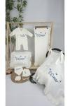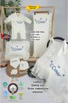 Kişiye özgü nakışlı tasarımı ile dikkat çeken bu set, bebeklerin hassas cildine uygun olarak üretilmiştir.