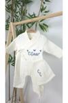 Gros Shop Müslin Yeni Doğan 4Katlı Organik %100Pamuk Kişiye Özgü Nakışlı Hastane Çıkış Seti-3'Lü Kuş Model