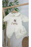 Gros Shop Müslin Yeni Doğan 4Katlı Organik %100Pamuk Kişiye Özgü Nakışlı Hastane Çıkış Seti (Ayıcık Model 4)