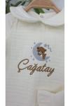 Gros Shop Müslin Yeni Doğan 4Katlı Organik %100Pamuk Kişiye Özgü Nakışlı Hastane Çıkış Seti (Ayıcık Model 4)