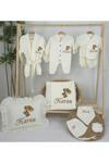 Gros Shop Müslin Yeni Doğan 4Katlı Organik %100Pamuk Kişiye Özgü Nakışlı Hastane Çıkış Seti (Ayıcık Model-6)