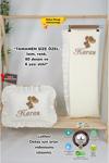 Set, kişiye özgü nakışlı ayıcık modeli ile dikkat çeker.