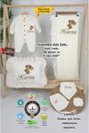 Gros Shop Müslin Yeni Doğan 4Katlı Organik %100Pamuk Kişiye Özgü Nakışlı Hastane Çıkış Seti (Ayıcık Model-6)