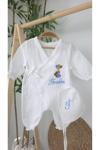 Gros Shop Müslin Yeni Doğan 4Katlı Organik %100Pamuk Kişiye Özgü Nakışlı Hastane Çıkış Seti-Ayıcık Model