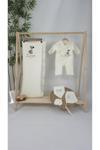 Gros Shop Müslin Yeni Doğan 4Katlı Organik %100Pamuk Kişiye Özgü Nakışlı Hastane Çıkış Seti (Balonlu Ayıcık-2)