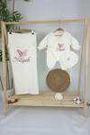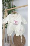 Gros Shop Müslin Yeni Doğan 4Katlı Organik %100Pamuk Kişiye Özgü Nakışlı Hastane Çıkış Seti (Çoklu Kelebek-2)