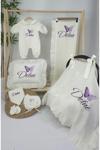 Gros Shop Müslin Yeni Doğan 4Katlı Organik %100Pamuk Kişiye Özgü Nakışlı Hastane Çıkış Seti-Çoklu Kelebek