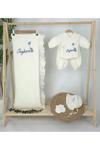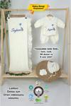Gros Shop Müslin Yeni Doğan 4Katlı Organik %100Pamuk Kişiye Özgü Nakışlı Hastane Çıkış Seti (Filli Model-2)