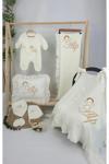 Gros Shop Müslin Yeni Doğan 4Katlı Organik %100Pamuk Kişiye Özgü Nakışlı Hastane Çıkış Seti (Gökkuşağı Model2)