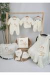 Gros Shop Müslin Yeni Doğan 4Katlı Organik %100Pamuk Kişiye Özgü Nakışlı Hastane Çıkış Seti (Gökkuşağı Model2)