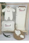 Gros Shop Müslin Yeni Doğan 4Katlı Organik %100Pamuk Kişiye Özgü Nakışlı Hastane Çıkış Seti (Güllü Mode-3)