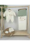 Set, kişiye özgü nakışlı tasarımıyla dikkat çeker ve bebeğinizin hassas cildine uygun olarak tasarlanmıştır.