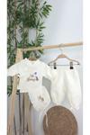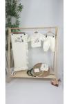 Gros Shop Müslin Yeni Doğan 4Katlı Organik %100Pamuk Kişiye Özgü Nakışlı Hastane Çıkış Seti-Kahverengi-Filli