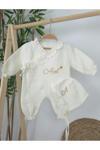 Gros Shop Müslin Yeni Doğan 4Katlı Organik %100Pamuk Kişiye Özgü Nakışlı Hastane Çıkış Seti-Kalpli