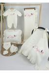 Gros Shop Müslin Yeni Doğan 4Katlı Organik %100Pamuk Kişiye Özgü Nakışlı Hastane Çıkış Seti (Kelebek Model-1)