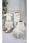 Gros Shop Müslin Yeni Doğan 4Katlı Organik %100Pamuk Kişiye Özgü Nakışlı Hastane Çıkış Seti-Kurdele Model