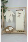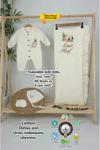 Gros Shop Müslin Yeni Doğan 4Katlı Organik %100Pamuk Kişiye Özgü Nakışlı Hastane Çıkış Seti (Kurt Model-1)