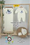 Set, kişiye özgü nakış detayı ile dikkat çeker ve bebeklerin hassas cildine uygun olarak dört katlı müslin kumaştan üretilmiştir.