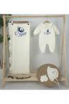 Gros Shop Müslin Yeni Doğan 4Katlı Organik %100Pamuk Kişiye Özgü Nakışlı Hastane Çıkış Seti (Kurt Model-2)