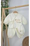 Gros Shop Müslin Yeni Doğan 4Katlı Organik %100Pamuk Kişiye Özgü Nakışlı Hastane Çıkış Seti (Papatya Model-6)