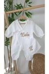 Gros Shop Müslin Yeni Doğan 4Katlı Organik %100Pamuk Kişiye Özgü Nakışlı Hastane Çıkış Seti-Papatya Model1