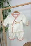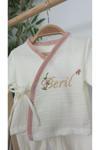 Gros Shop Müslin Yeni Doğan 4Katlı Organik %100Pamuk Kişiye Özgü Nakışlı Hastane Çıkış Seti (Pudra Biyeli-1)