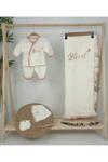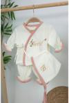 Gros Shop Müslin Yeni Doğan 4Katlı Organik %100Pamuk Kişiye Özgü Nakışlı Hastane Çıkış Seti (Pudra Biyeli-1)