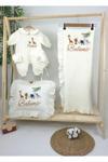 Gros Shop Müslin Yeni Doğan 4Katlı Organik %100Pamuk Kişiye Özgü Nakışlı Hastane Çıkış Seti-Safari Model