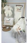 Gros Shop Müslin Yeni Doğan 4Katlı Organik %100Pamuk Kişiye Özgü Nakışlı Hastane Çıkış Seti-Safari Model