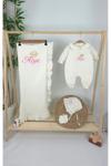 Gros Shop Müslin Yeni Doğan 4Katlı Organik %100Pamuk Kişiye Özgü Nakışlı Hastane Çıkış Seti-Taçlı Gold