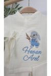 Gros Shop Müslin Yeni Doğan 4Katlı Organik %100Pamuk Kişiye Özgü Nakışlı Hastane Çıkış Seti (Tavşan Model-4)