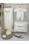 Gros Shop Müslin Yeni Doğan 4Katlı Organik %100Pamuk Kişiye Özgü Nakışlı Hastane Çıkış Seti (Yaprak Desen-2)