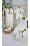 Gros Shop Müslin Yeni Doğan 4Katlı Organik %100Pamuk Kişiye Özgü Nakışlı Hastane Çıkış Seti-Yeşil Ayıcık Balon