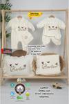 Gros Shop Müslin Yeni Doğan 4Katlı Organik %100Pamuk Kişiye Özgü Nakışlı Hastane Çıkış Seti(3'Lü Kelebk Model)