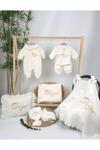 Gros Shop Müslin Yeni Doğan 4Katlı Organik %100Pamuk Kişiye Özgü Nakışlı Hastane Çıkış Seti(Çiçekli Model-1)