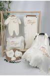 Gros Shop Müslin Yeni Doğan 4Katlı Organik %100Pamuk Kişiye Özgü Nakışlı Hastane Çıkış Seti(Çiçekli Model-1)