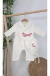 Ekru rengi ile her cinsiyete uygun olan bu set, 0-3 ay arası bebekler için tasarlanmıştır.