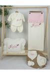 Gros Shop Müslin Yeni Doğan 4Katlı Organik %100Pamuk Kişiye Özgü Nakışlı Hastane Çıkış Seti(Kelebekli Papatya)