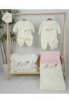 Gros Shop Müslin Yeni Doğan 4Katlı Organik %100Pamuk Kişiye Özgü Nakışlı Hastane Çıkış Seti(Kelebekli Papatya)