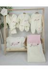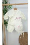 Gros Shop Müslin Yeni Doğan 4Katlı Organik %100Pamuk Kişiye Özgü Nakışlı Hastane Çıkış Seti(Kelebekli Papatya)