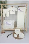 Gros Shop - Müslin Yeni Doğan 4Katlı Organik %100Pamuk Kişiye Özgü Nakışlı Hastane Çıkış Seti(Tekli Kelebek-1)