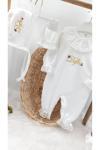 İşlemeli kişiye özel isim detayı ile bebeğinizin ismini taşıyan bu tulum seti, ona özel bir hediye olarak da tercih edilebilir