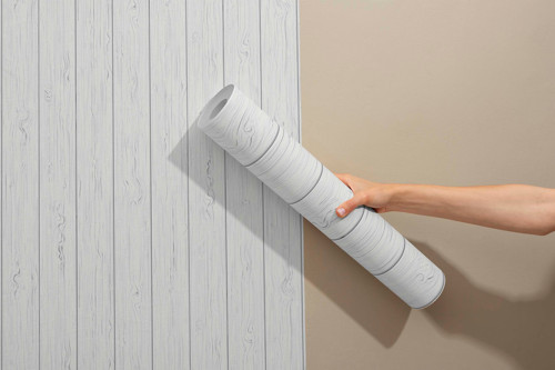 Beyaz Ahşap Desenli Kendinden Yapışkanlı Duvar Kağıdı - Mutfak ve Banyo