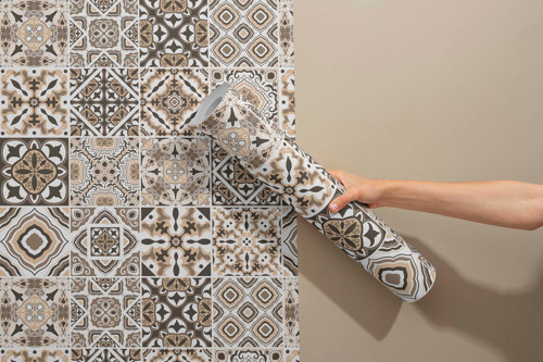 Geometrik Kahverengi Karo Desenli Kendinden Yapışkanlı Duvar Kağıdı - Mutfak ve Banyo