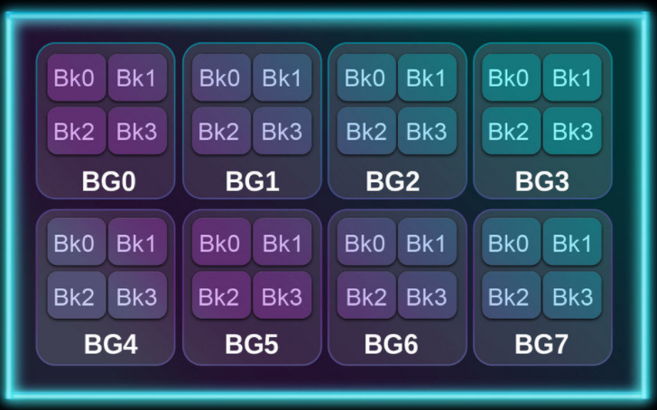 Daha yüksek frekans hızını tam olarak kullanmak ve veri aktarım hızını artırmak için tasarlanan her DDR5 IC, 16'lık bir patlama uzunluğuna sahip 8 bankada 32 bankada iki kat daha fazla banka ve banka grubuyla ve iki kat patlama uzunluğuyla uygulanır. İki adet 32 bitlik alt kanaldan oluşan bir modül düzeniyle bir araya gelen DDR5 bellek, DDR4'ten daha fazla veri sağlayabilir.
