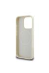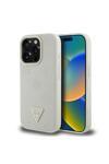 Guess 15 Pro Max Uyumlu Kılıf Özellikli Üçgen Logolu Pu Deri Kapak Bej