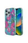Guess 16 Pro Uyumlu Kılıf Magsafe Özellikli Flower Tone On Tone Ring Pembe